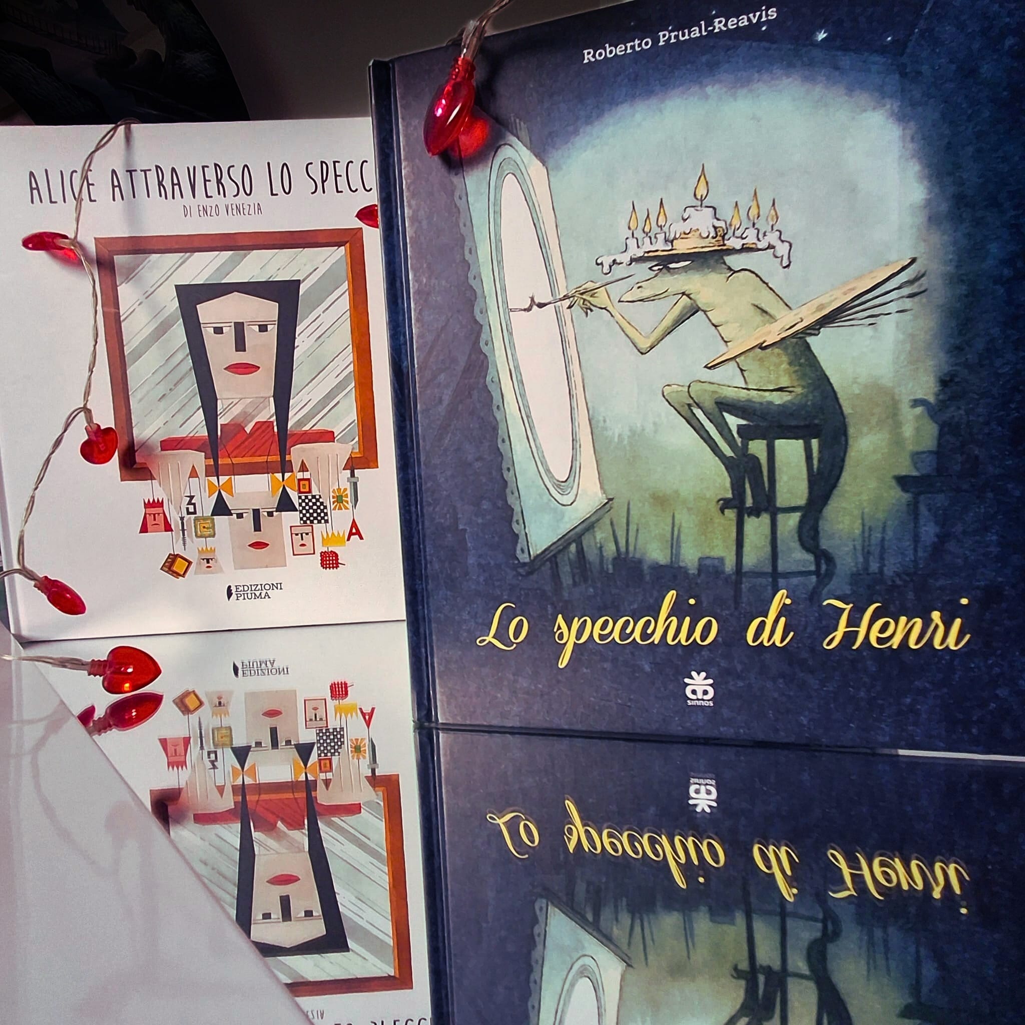 E quando si parla di specchio e di oltre, come non citare Alice attraverso lo specchio, qui in versione di Enzo Venezia edito da Edizioni Piuma. La storia, rivisitazione visionaria del classico di Lewis Carrol, la conosciamo tutti: Alice seduta in salotto, si chiede cosa mai possa esserci oltre il suo specchio. Si avvicina e con sua grande sorpresa riesce ad attraversarlo, ritrovandosi di colpo in un ambiente simile al suo salotto, ma riflesso al contrario. Da qui, parte il suo viaggio con l’incontro di stravaganti personaggi.